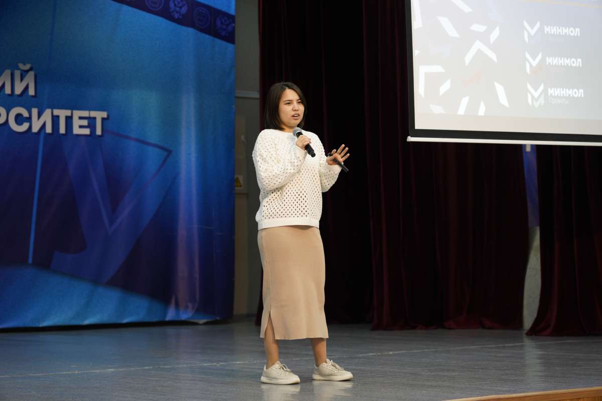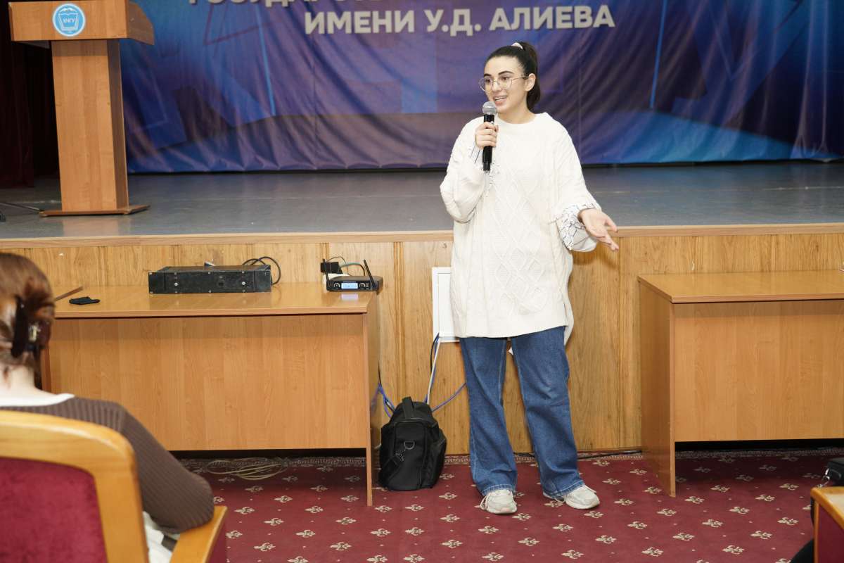 Региональный куратор КГО Общероссийского общественного государственного движения детей и молодёжи «Движение первых» Медина Смагиловна Аджиева представила студентам возможности для активного участия в жизни движения. Она рассказала о широком спектре направлений деятельности, от волонтёрства и творчества до развития лидерских качеств, и призвала молодых людей присоединиться к сообществу единомышленников.