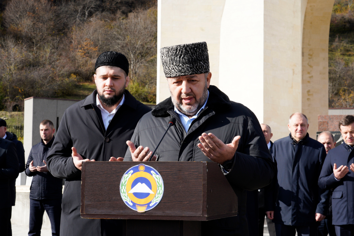 Председатель Президиума Духовного управления мусульман КЧР Муфтий Мухаммад-Хаджи Эркенов и участники траурного мероприятия-митинга совершили обряд дуа за погибших.