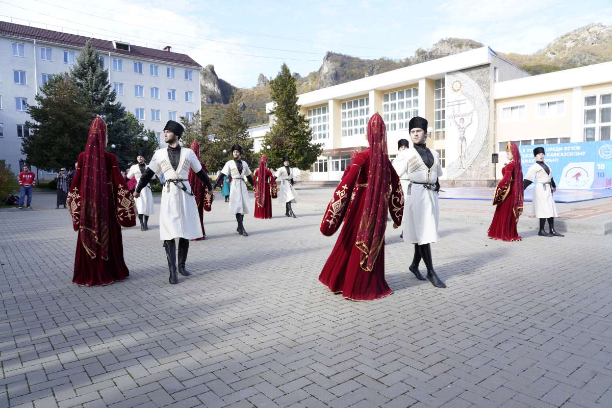 Открытие турнира началось с концертной программы. Участников соревнований танцевальными и музыкальными номерами поприветствовали студенческий народный хореографический ансамбль «Шохлукъ-Дружба», солист группы «Домбай», заслуженный артист КЧР Александр Меликаев и золотой голос КЧР – Таулан Батчаев.