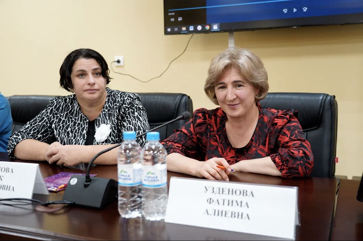 В мероприятии приняли участие: Узденова Фатима Алиевна – заведующая МКДОУ КГО «Детский сад №15 «Вики». Лайпанова Мёлек Магометовна – заведующая ДОУ «Светлячок» при МБОУ «Средняя школа пос. Новый Карачай имени М.К.Эльканова».