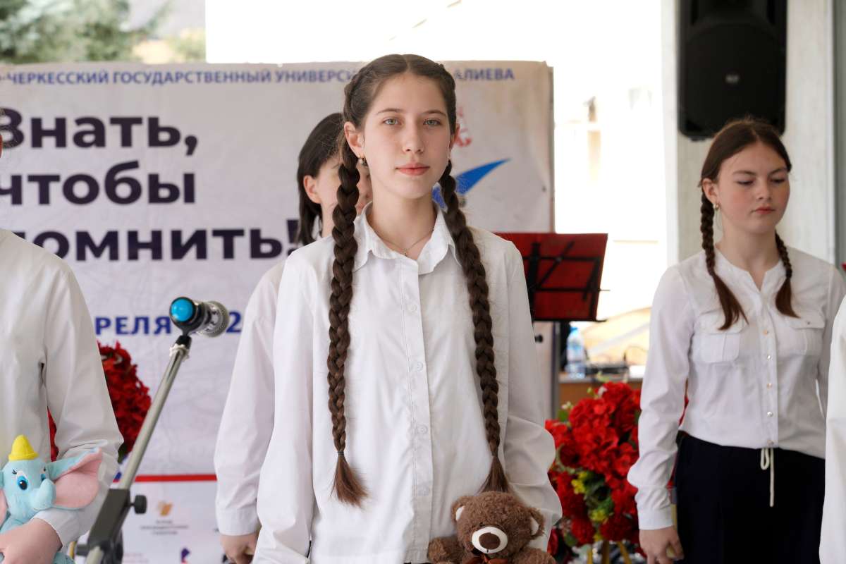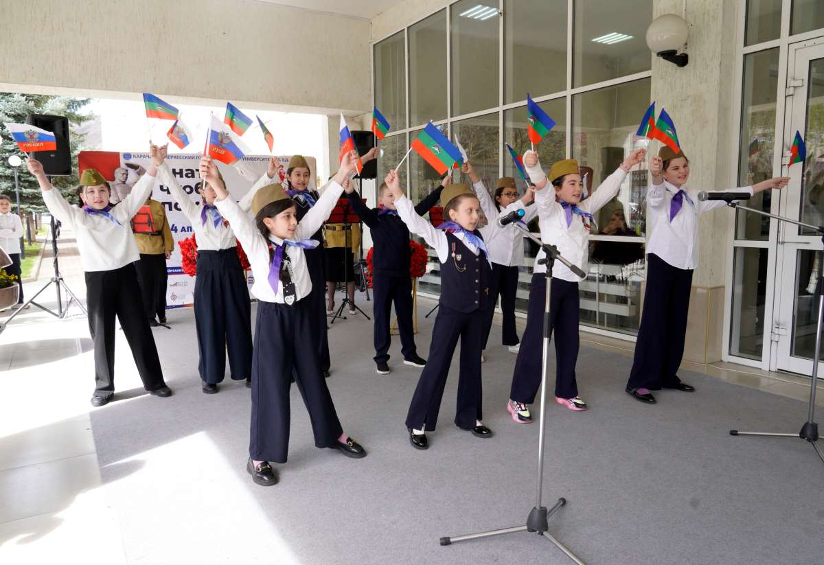 Акция началась с праздничного концерта, организованного кафедрой музыкального образования Института культуры и искусств во дворе вуза. Участие в концерте приняли сотрудники кафедры, учащиеся гимназии № 4 имени М. Хабичева, учащиеся музыкальной школы г. Карачаевска вместе с преподавателем Магомедом Боташевым, а также студенты Института культуры и искусств.