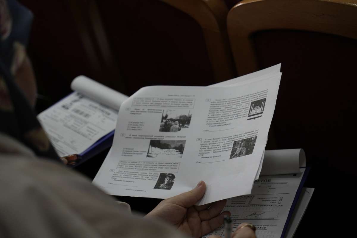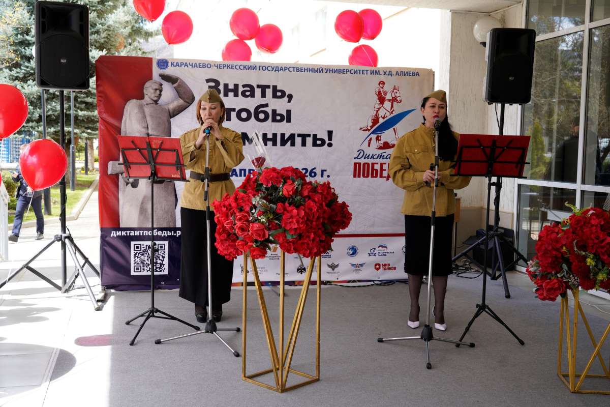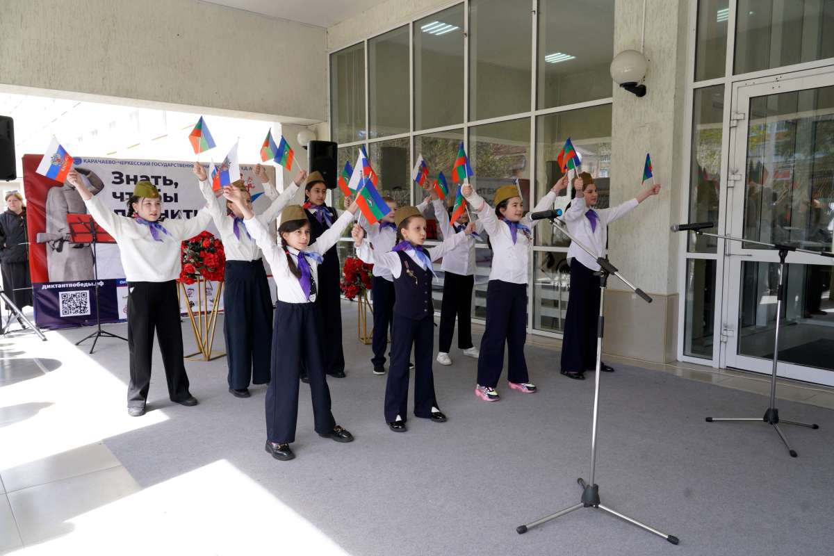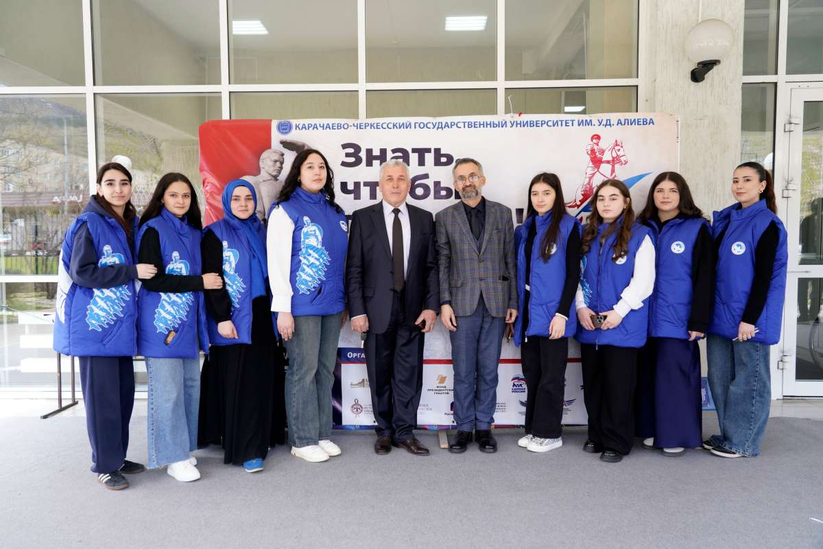 В этом году «Диктант Победы», организованный историческим факультетом и Управлением молодежных инициатив и общественных коммуникаций, прошел в актовом зале КЧГУ, где собрались студенты и сотрудники вуза, учащиеся школ Карачаевского городского округа и Карачаевского муниципального района, представители общественных организаций и Совета ветеранов войны и труда КГО.