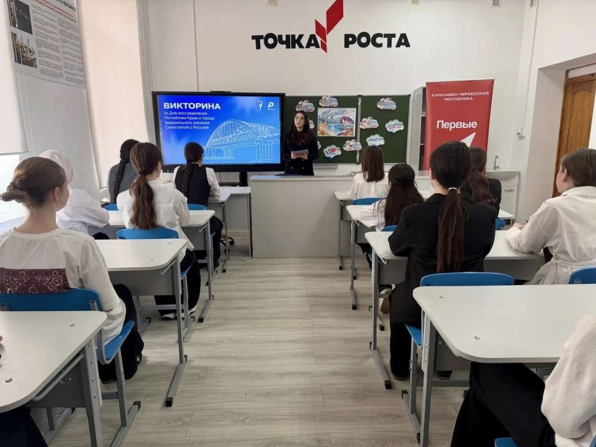 В рамках проведения Всероссийской акции «Из Крыма и Севастополя с любовью», приуроченной ко Дню воссоединения Республики Крым и города Севастополя с Российской Федерацией активисты университетского отделения «Движения Первых» Карачаево-Черкесского государственного университета организовали просветительское мероприятие для подрастающего поколения.
