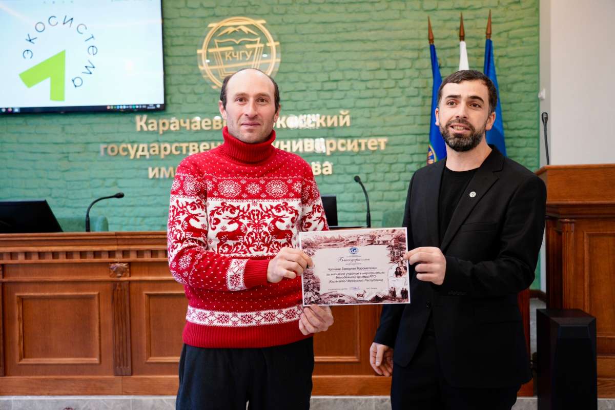 В завершение своего выступления Алий Кипкеев вручил Благодарственные письма за активное участие в деятельности движения «Экосистема» и личный вклад в развитие экологического добровольчества в России сотрудникам КЧГУ: старшему преподавателю кафедры биологии и химии ЕГФ Борлаковой Фатиме Магометовне, директору археологического музея КЧГУ Айбазову Ахмату Юсуфовичу и руководителю молодежного центра РГО КЧР Тохчукову Шамилю Юсуфовичу.