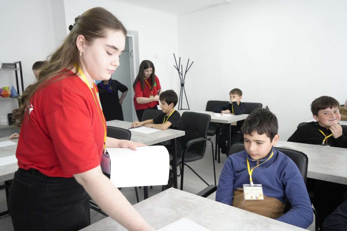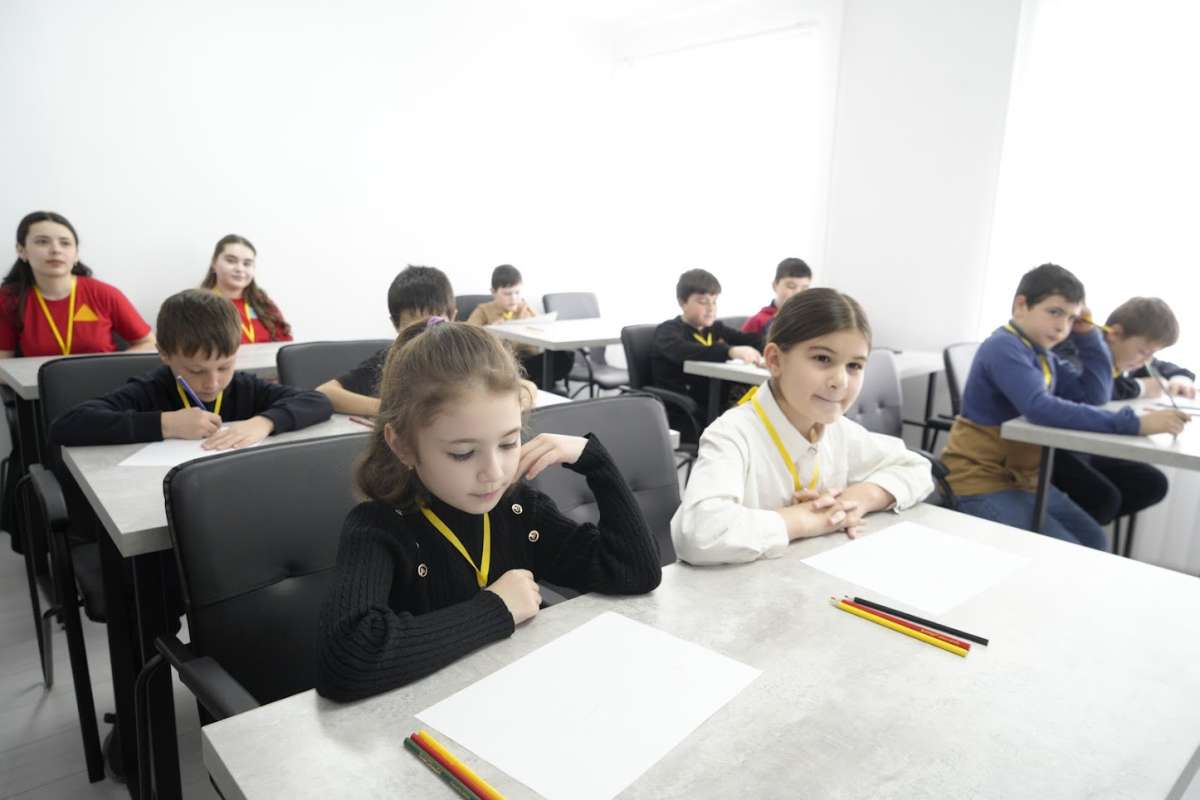 В этот раз студенты пригласили учащихся младших классов СШ № 1 имени Д. К. Байрамукова погрузиться в удивительный мир геометрии.
