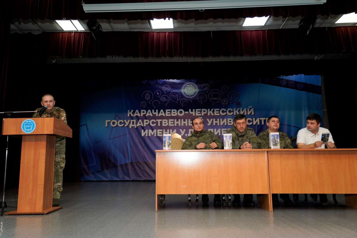 Перед студентами выступили начальник пункта отбора на военную службу по контракту майор Николай Дмитриев, инструкторы пункта отбора Ренат Темиров, Руслан Хубиев, Константин Нагорнов, начальник отделения призыва и подготовки граждан к военной службе Аубекир Эбзеев.