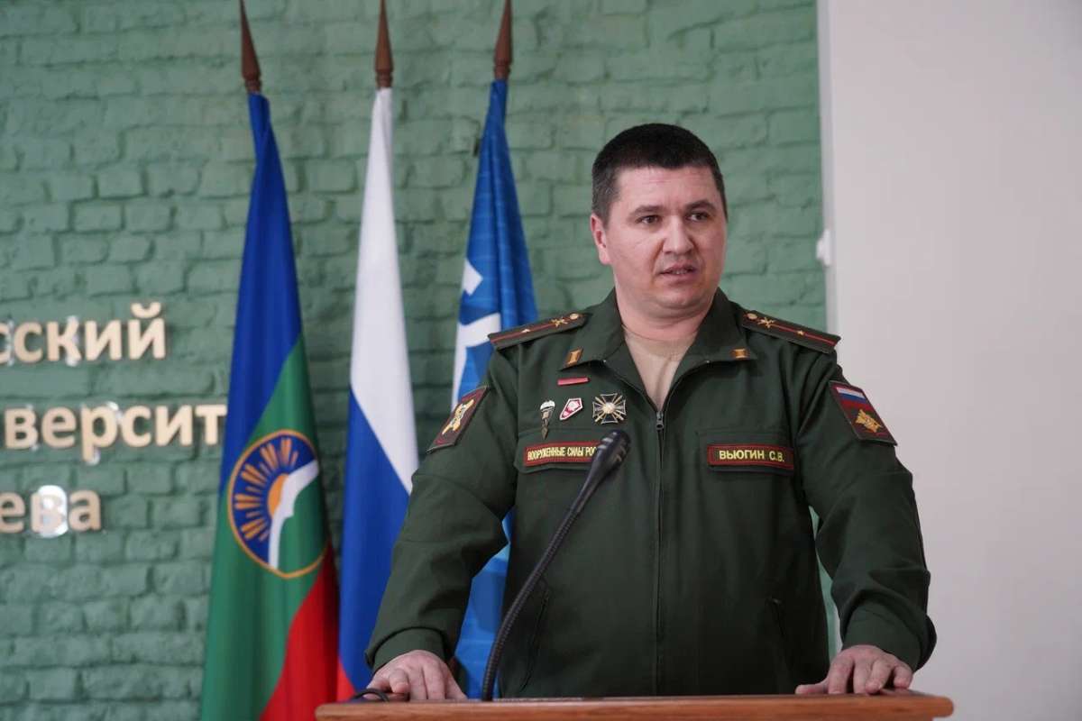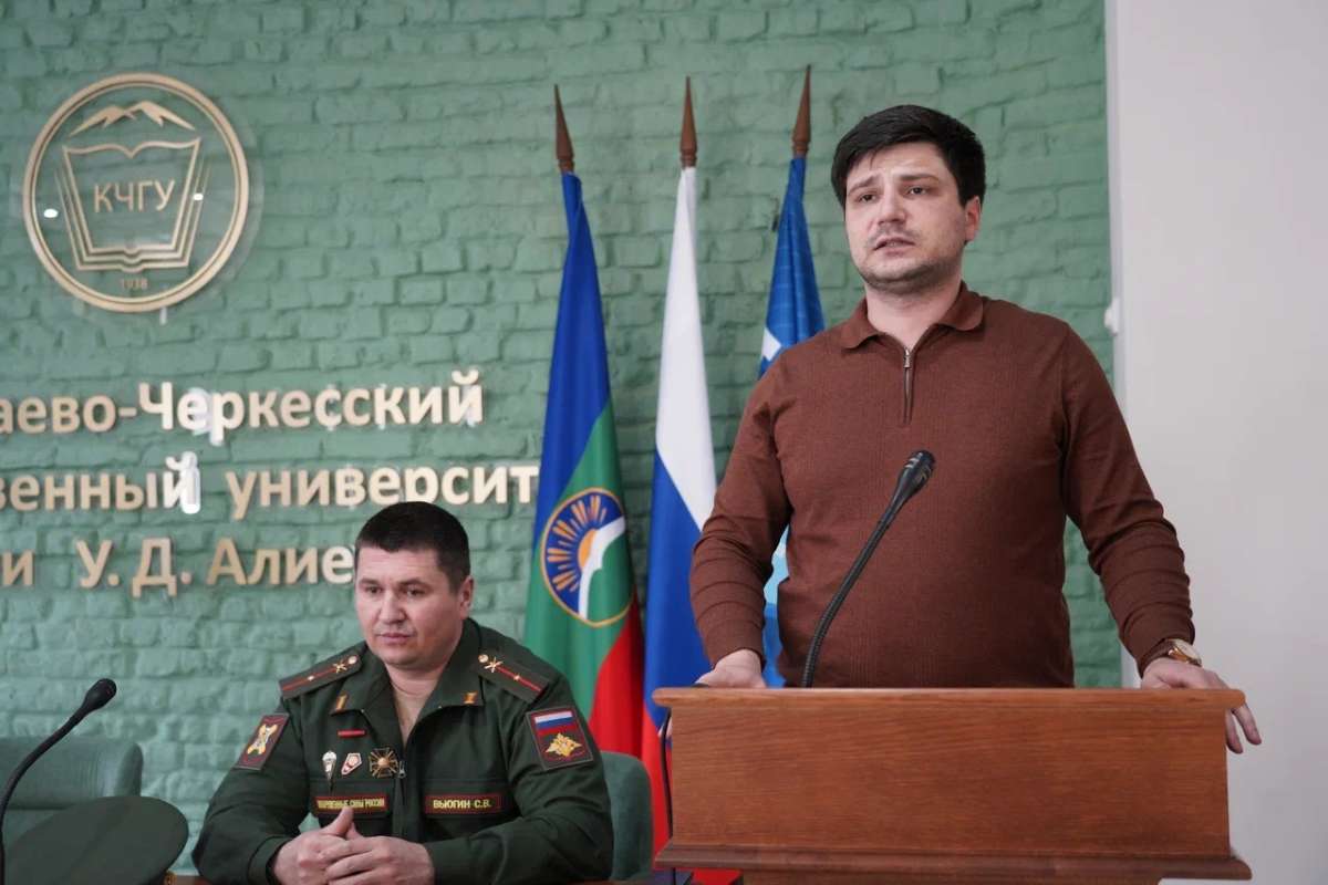 Перед студентами выступили: Сергей Вьюгин — офицер пункта отбора граждан на военную службу по контракту, младший лейтенант; Эльдар Бостанов — и. о. проректора по молодёжной политике и воспитательной деятельности КЧГУ; Наталья Катан — начальник мобилизационного отдела КЧГУ.