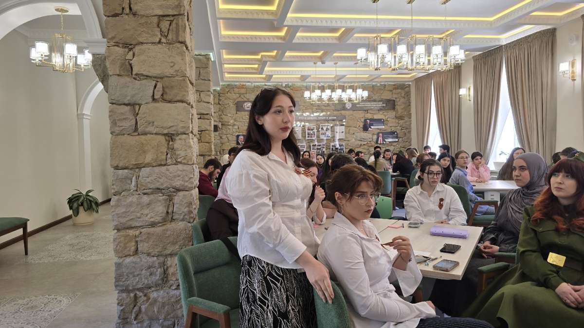 – Диана Астежева представила тему «Непобедимая наука во время войны. Сергей Леонидович Рубинштейн», рассказав о значении его исследований для фронта. – Алана Шаманова осветила вклад Блюмы Вульфовны Зейгарник и её работы по психологии в годы войны. – Алия Магулаева рассказала о Вольфе Соломоновиче Мерлине и его влиянии на психологическую практику в условиях боевых действий. – Меккахан Боташева представила доклад об Алексее Николаевиче Леонтьеве и его научных достижениях во времена Великой Отечественной войны. – Замира Алиева погрузила аудиторию в мир ленинградских психологов, акцентируя внимание на деятельности Анны Александровны Люблинской. – Залина Джумаева завершила цикл докладов темой «Узелки памяти. Деятельность отечественных психологов в военные годы», где подробно остановилась на вкладе Александра Романовича Лурии.